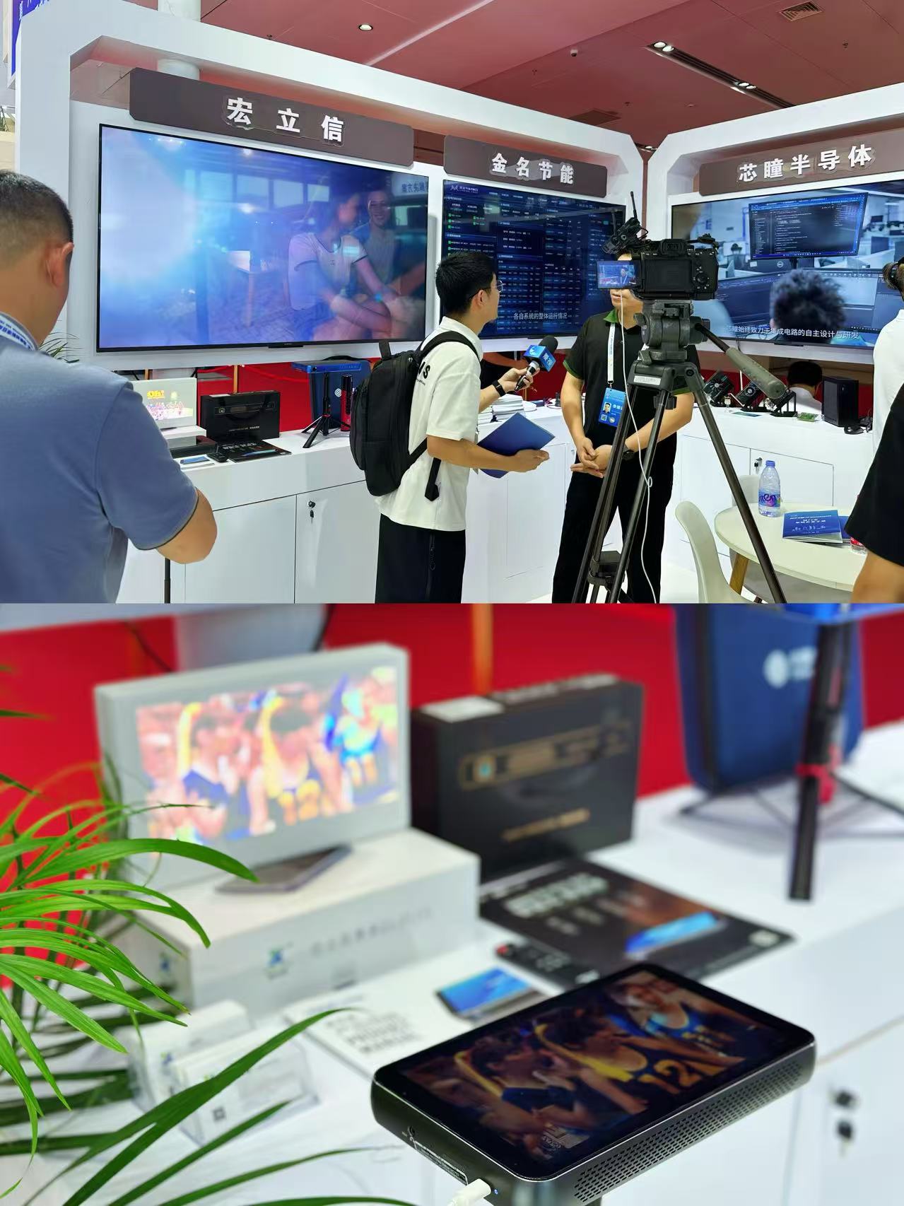 本次厦门馆展区旨在推动科技创新与产业创新深度融合,宏立信智能投屏机作为AI板块数字化智能服务解决方案的创新成果产品,吸引众多观众、嘉宾以及媒体前来体验。